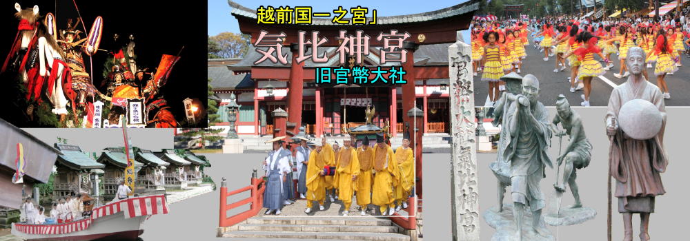 | 越前一の宮、気比神宮は神代よりあって、その神人は北は佐渡、西は山陰地方にまで広がっていた。気比社は越前国国府(府中)と相対して、独立的な勢力となっていた。平安期正一位勲一等に昇格、明治には官幣大社となり鎮護国家の社として歴史を歩んできた。敦賀の人々は「気比さん」と呼称し、敦賀の歴史は気比神宮と共にあった。 |